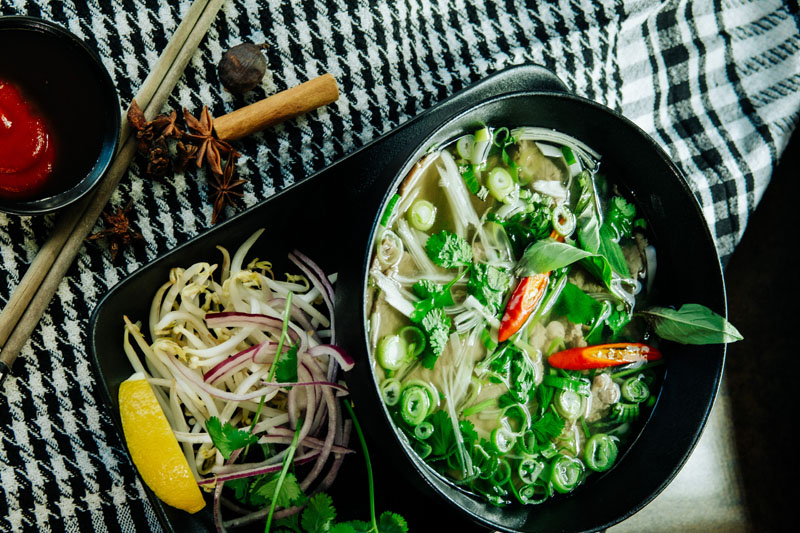 Das Angebot umfasst unter anderem klassische Pho‘s, leichte Sommerrollen, lauwarme Reisnudeln Bowls mit frischen Kräutern, die Vietnams Küche auszeichnen.