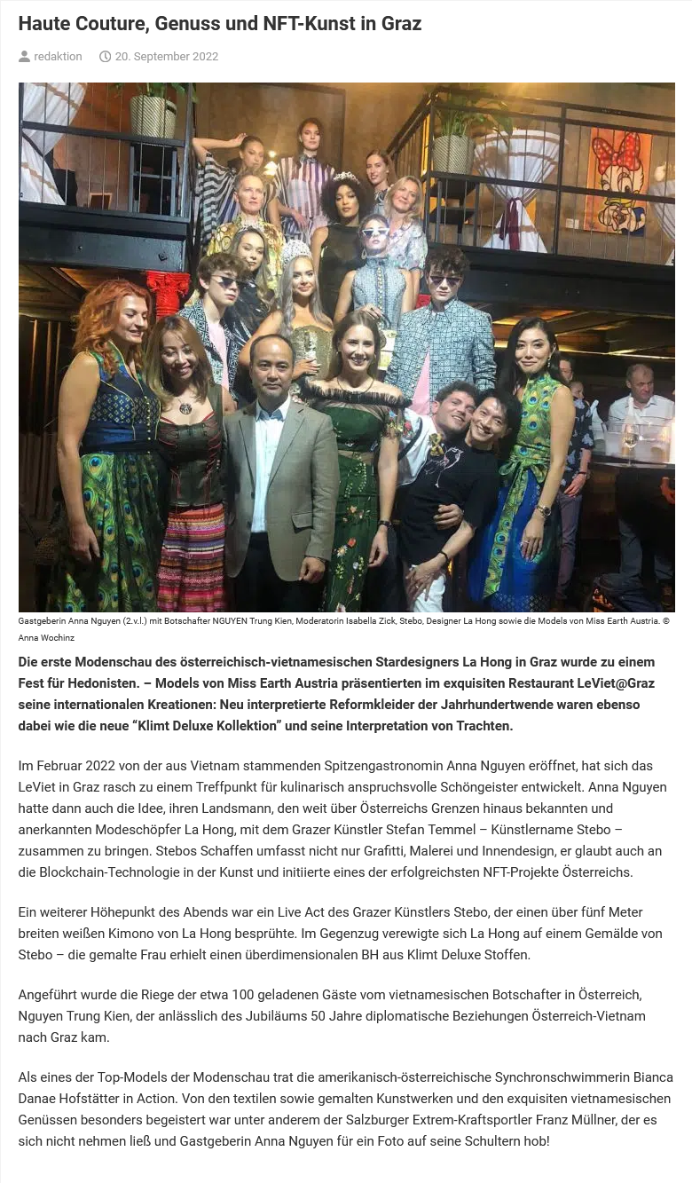 Das Angebot umfasst unter anderem klassische Pho‘s, leichte Sommerrollen, lauwarme Reisnudeln Bowls mit frischen Kräutern, die Vietnams Küche auszeichnen. Auch für Veganer wird es eine große Auswahl geben, wobei penibelst darauf geachtet wird, dass natürlich auch die Brühen und Saucen vegan zubereitet werden. Die Bar bietet großteils österreichische Weine an, wobei speziell ein Augenmerk auf steirische Winzer gelegt wird. Auch nachmittags kann man auf einen Café kommen, da das Lokal durchgehend täglich von 11 - 23 Uhr geöffnet hat. Freitags und Samstags bis um 2:00 Uhr, vorausgesetzt die Einschränkungen werden aufgehoben. Wir sind gespannt auf das Le Viet und heissen es in unserem Viertel herzlich willkommen.
